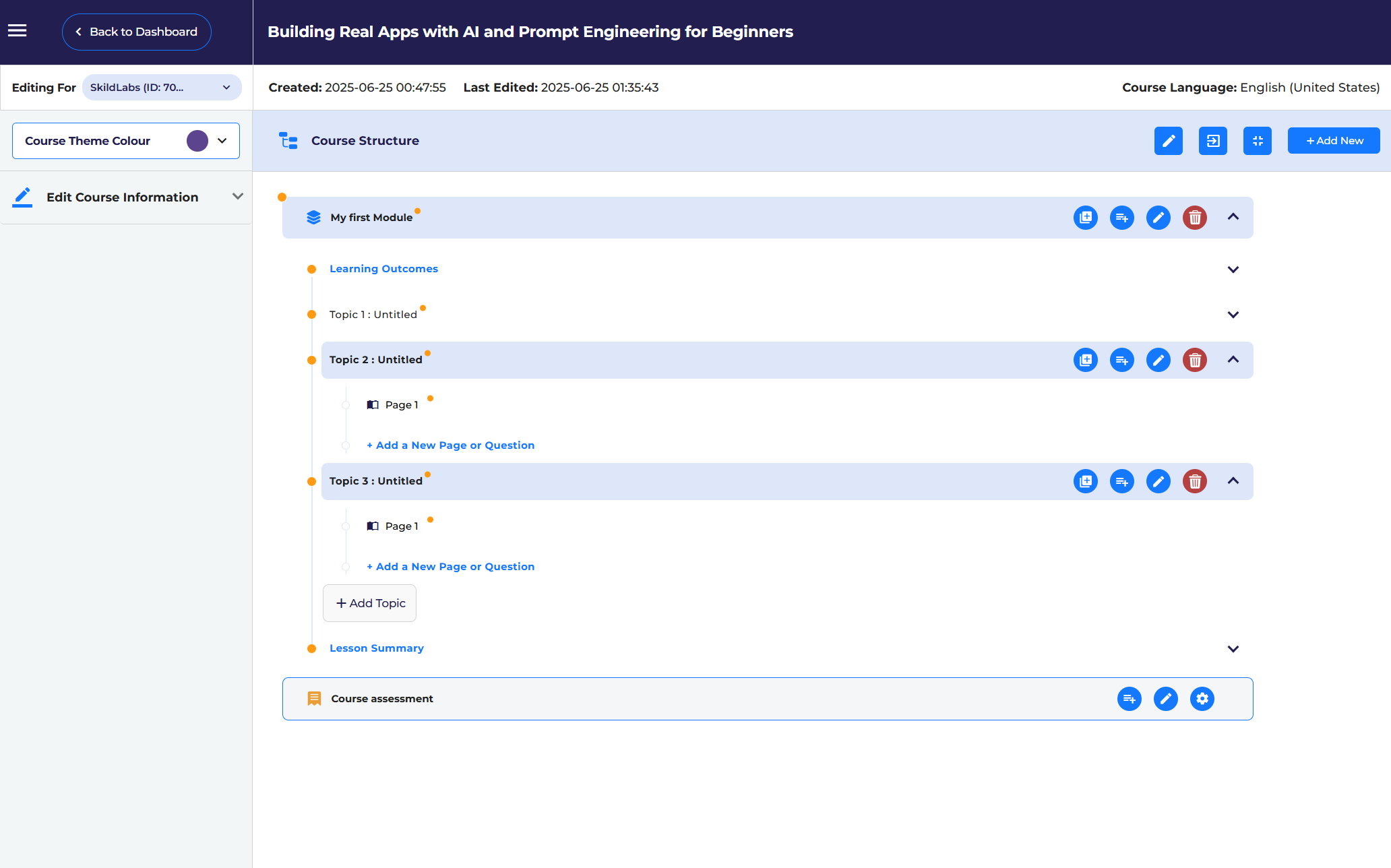 learning management systems planning course development artificial intelligence instructional designThe goal of this project is to develop an eLearning course (from provided detailed documentation) using AI tools and author it into an LMS platform. SkildLabs aims to leverage AI technologies like Synthesia to create engaging and interactive course content.